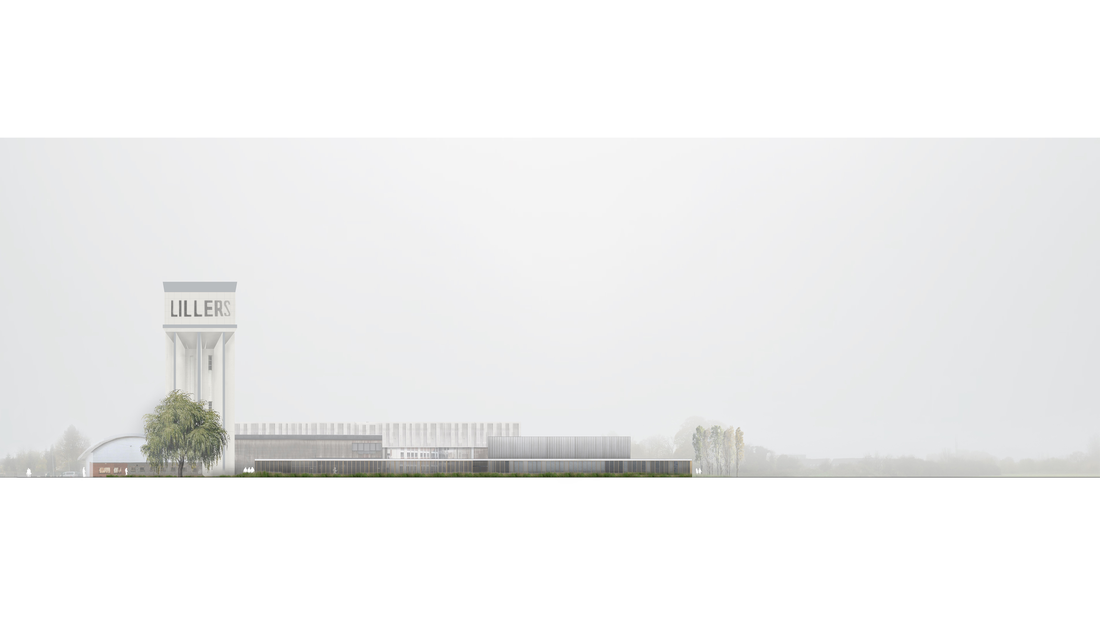 La forme initiale de l’implantation est recomposée par un jeu subtil de portiques et de serrureries. Ce péristyle amène la clôture jusqu’aux limites du terrain extérieur pour finalement s’effacer et révéler la salle. L’architecture devenue paysage.
